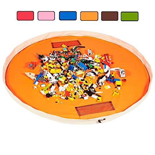 Toy Storage Bag by Block Bag huge play mat organizer soft cotton 60 inch (Orange)