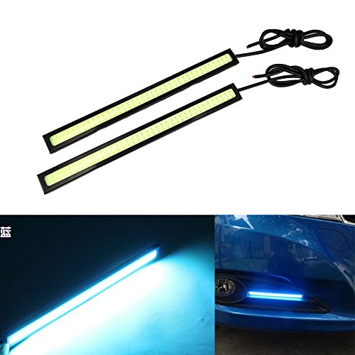 Holonyak 2 pcs Set Waterproof Aluminum High Power 17CM 6000K Xenon Slim COB LED DRL Daylight Driving Daytime Running Light Lamp For Car SUV Sedan Coupe Vehicle Universal (Crystal Blue-Black border)