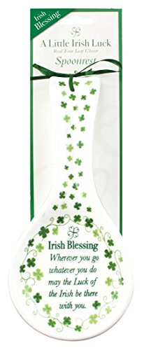 Ceramic Spoon Rest With Irish Blessing And Shamrock Design