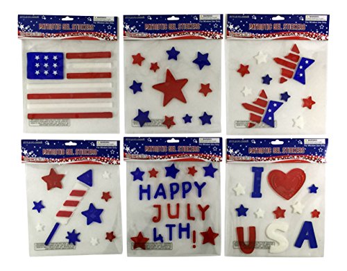 Patriotic American Flag Gel Sticker Window Clings Bundle of 6 Packages