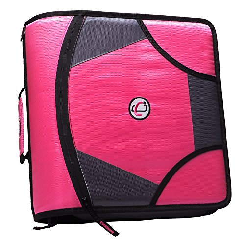 Case-it King Sized Zip Tab 4" D-Ring Zipper Binder with 5-Tab File Folder, Neon Pink (D-186-NeoPnk)