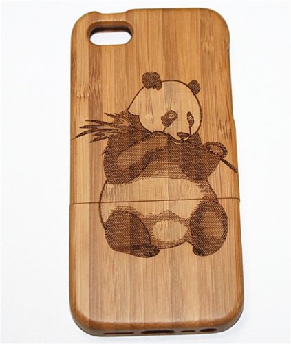 iPhone 6/6S Case, Firefish Panda Pattern Natural Handmade Hard Wood Case Cove With Laser Engraved Shock & Scratch Protective For iPhone 6/6S ( With A Stylus) -Panda