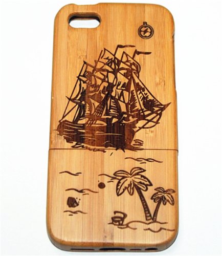 iPhone 6/6S Plus Case, Firefish Wood Life Natural Handmade Carved Wooden Hard Case Cover Protective Shell For iPhone 6/6S Plus ( With A Stylus) -Sailing