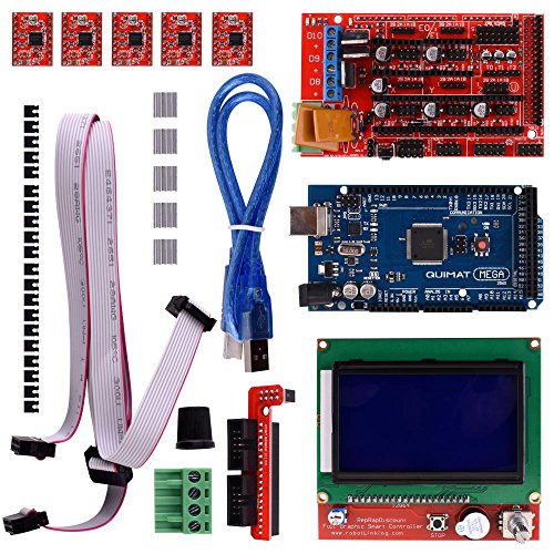 Quimat 3D Printer Controller Kit for Arduino Mega 2560 Uno R3 Starter Kits + RAMPS 1.4 with Upgraded Mosfet + 5pcs A4988 Stepper Motor Driver + LCD 12864 for Arduino Reprap (Old Version)