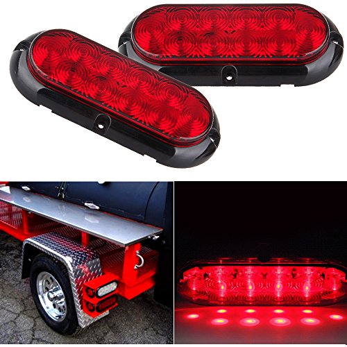 cciyu 2 Pack Red 10 LEDs Oval Rubber Mount Sealed LED Brake Stop Turn Tail Light w/grommet Trailer Truck Rv Sealed