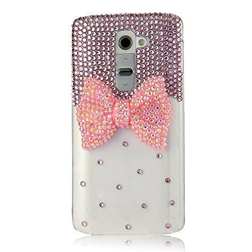 LG K7 Case, LG Tribute 5 Case, Sense-TE Luxurious Crystal 3D Handmade Sparkle Diamond Rhinestone Clear Cover with Retro Bowknot Anti Dust Plug - Bowknot / Pink
