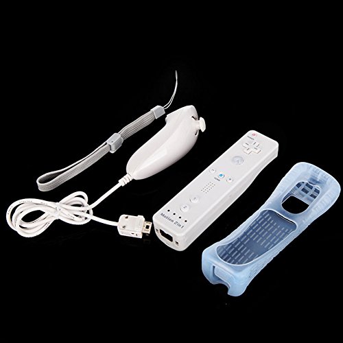ES Built-in Motion Plus Remote Controller and Nunchuk Combo Bundle Set with Silicone Case and Wrist Strap for Nintendo Wii