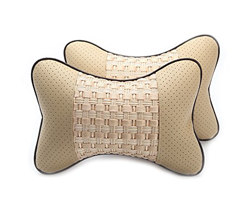 XINDELL Car Seat Neck Pillow, Auto Ice Silk Headrest, Head Rest Cushion Pad, with Breathable Drilling Cover, 1 Pair (Beige)