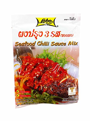 5 packs of Seafood Chilli Sauce Mix, Premium Spices from Thailand by Lobo. No preservatives added, No artificial colours added. (75 g/ pack)