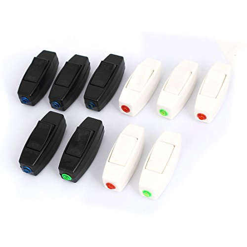 Uxcell a15121800ux0299 ON/Off Flat Button in Line Cord Switch for Bedroom, 10 Piece Black White AC 250V 6 Amp