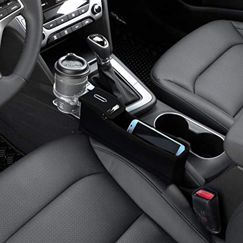 KMMOTORS Coin Side Pocket Black Console Side Organizer Crevice Filler Console Side Organizer Multi-Functional Storage (Black. Driver. with Cupholder)
