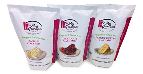 My Grandpa's Farm Organic Gluten Free Variety Pack, non gmo, allergen free (3 mixes) - Chocolate Cake Mix, Banana Cake Mix, and Peanut Butter Cake Mix