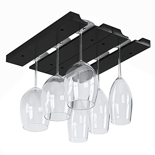 Rustic State Under Cabinet Wooden Hanging Wine Glass Holder by ArtifactDesign Adjustable 2-Sectional Stemware Storage Rack Black