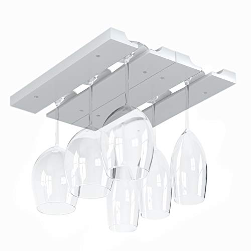 Rustic State Under Cabinet Wooden Hanging Wine Glass Holder by ArtifactDesign Adjustable 2-Sectional Stemware Storage Rack White