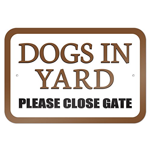 Dogs in Yard Please Close Gate Brown 9" x 6" Metal Sign