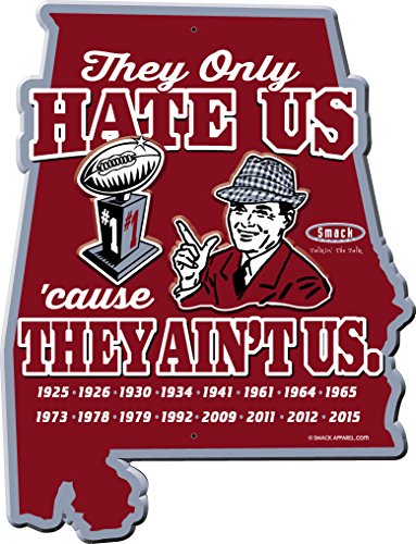 Smack Apparel Alabama Football Fans. They Only Hate Us Cause They Ain't Us. Embossed Metal Man Cave Sign