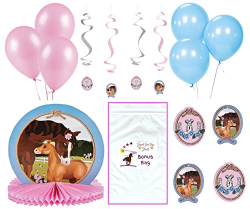 Pretty Horses Birthday Party Baby Shower Decorations Tableware Western theme Bundle Cowgirl Cowboy (1 centerpiece, 12 hanging swirls, 12 balloons & Bonus Bag)