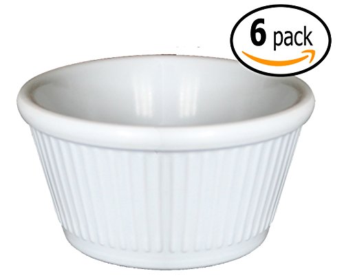 Clipper Fluted Round Stackable Melamine Condiment Ramekins with Pan Scraper, White (6-Pack, 4 Ounce)