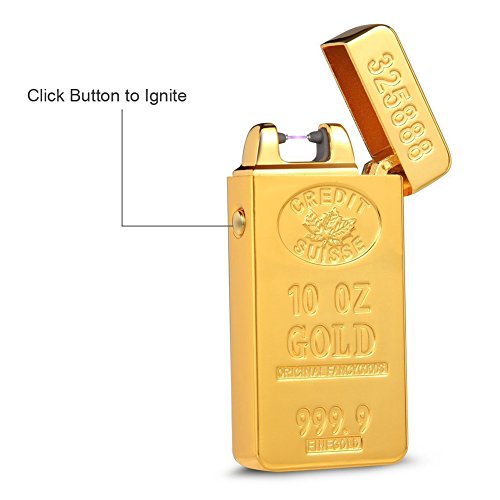 [Shake to Ignite] Kivors Windproof USB Rechargeable Pulse Arc Gold BRIC Shape Electronic Flameless Cigarette Lighter