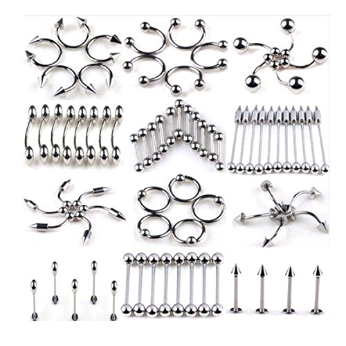CrazyPiercing 60pcs Wholesale 316L Surgical Steel Body Jewelry Barbell Belly Lip Nipple Rings Eyebrow Piercing (Silver 60 PCS)