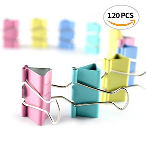 BeautyMood Colorful Metal Binder Clips, Assorted Colors and size 19mm(0.7 inch), 120 Clips per Tub