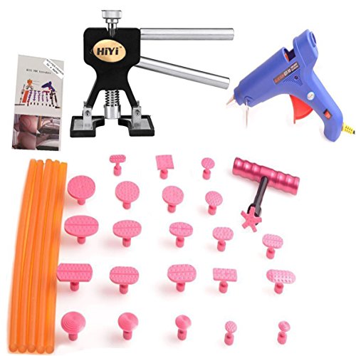 HiYi 33pcs Paintless Dent Repair Kits Glue Puller Slide Hammer Dent Lifter 24PCS Different Size Tabs Glue Gun Sticks Tap Down Dent Removal DIY Tools