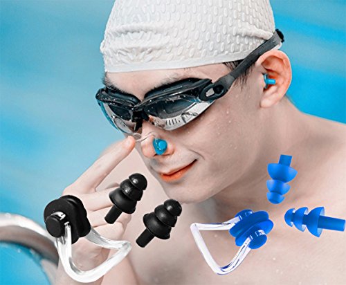 Blackcell Silicone Swimming Ear Plugs and Nose Clip Bundle,2 PCS