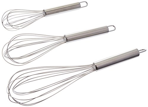 Gogogu 3 Pack Stainless Steel Whisk, Kitchen Whisk, Balloon Whisk Set, Wire Whisk, Egg Frother, Milk and Egg Beater Blender, Kitchen Utensils for Blending, Whisking, Beating and Stirring
