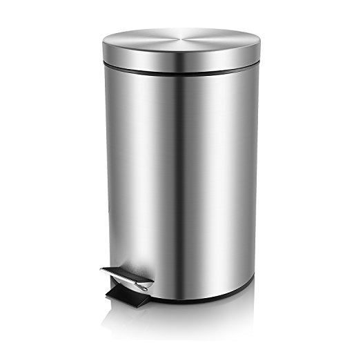 Small Stainless Steel Brushed Finish Malmo Round Step Trash Can, 5L/1.3Gallon