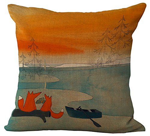 ChezMax Fox Cartoon Stuffed Cushion Cotton Linen Throw Pillow Insert Square for Hotel Club Bar Decoration Decor Decorative Chair Seat Sofa