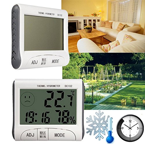 GOCHANGE In/Outdoor LCD Digital Hygrometer Thermometer Temperature Humidity Meter with Clock