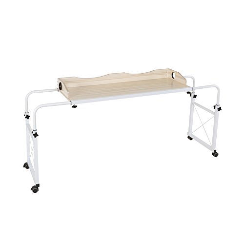UNKU Adjustable Overbed Table, Laptop Cart Laptop Table With Wheels, Light Grain