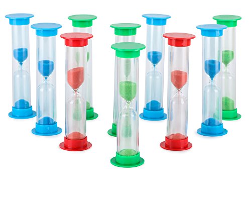 Sand Timer Set (3 Min) Large 10pcs Pack - Colorful Set of Three Minutes Hour Glasses for Kids, Adults - Colors: Blue, Green, Red by Jade Active