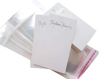 JGFinds 100 pcs Jewelry Earring Display Cards with Self Adhesive Bags (White)