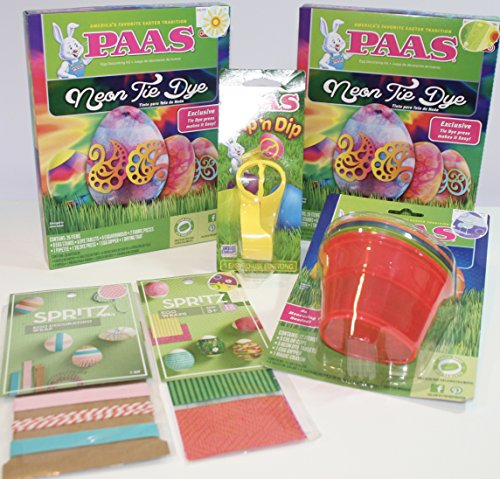 6-Pc Neon Tie Dye Easter Egg Decorating Bundle: 2 Boxes Paas Tie Dye Kits, Neon Color Cups, Egg Wraps and Egg Tongs