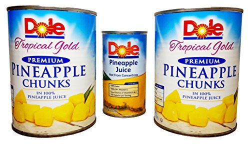 Premium Pineapple Chunks in 100% Pineapple Juice, Dole Tropical Gold Premium 20 oz. (Pack of 2) And 1 can of Dole Pineapple Juice, 6 fl oz.