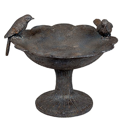 Sitting Birds 10 inch Grey Stone Decorative Tabletop Indoor Outdoor Bird Bath Bowl