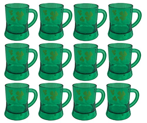 St Patricks Day Green Shamrock Mini Beer Mug Party Shot Glass (Set of 12)
