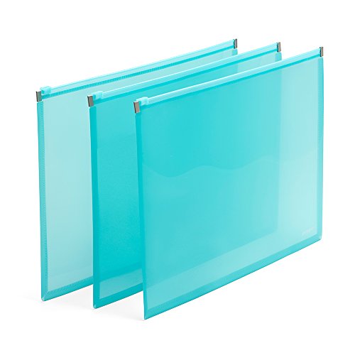 Poppin Sets of 3 Aqua Zip Folios, 18 count