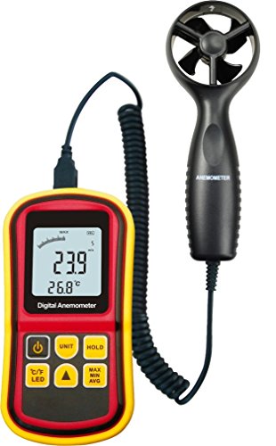 Leaton Portable LCD Digital Anemometer Wind Speed Meter Air Velocity Air Temperature Meter with Vane Sensor (inclued Battery) (LD8901)