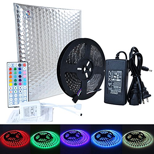 SINOU 5-Meter Waterproof Flexible Color Changing RGB SMD 5050 300 LEDs Light Strip Kit with 44 Keys IR Remote Controller,Control Box for Home Decorative