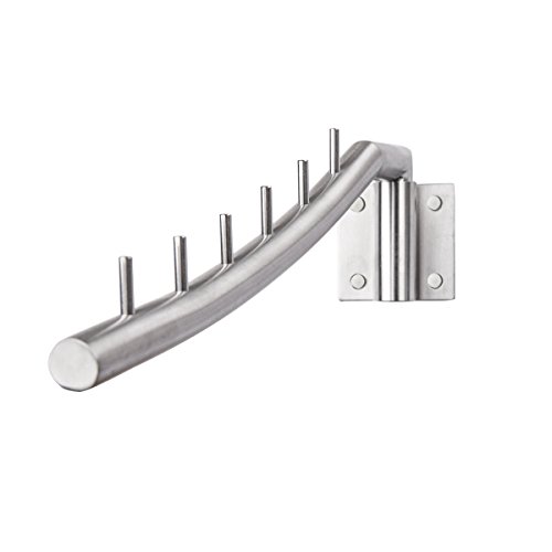 IMEEA Closet Space Saver Swing Arm Clothes Drying Hanger Wall-Mounted SUS304 Brushed Stainless Steel with 6 Hooks 12.6inch (1-Set)