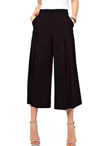 CHOiES record your inspired fashion Women's Black/White High Waist Plain Wide Leg Palazzo Capri Pants