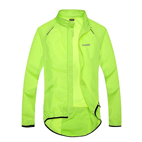 Santic Men's Cycling Skin Coat Jersey Bicycle Windproof Jacket Light Rain Coat Green