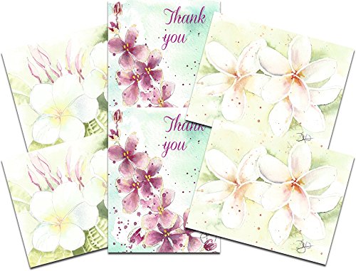 Summer Plumeria Assortment: 6 Blank Artistic All Occasion Watercolor Floral Cards, with Envelopes