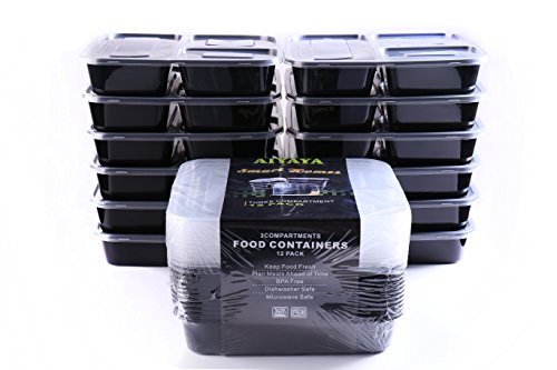 FAiyaya ®3 Compartment Reusable Food Storage Containers with Lids, Microwave and Dishwasher Safe, Bento Lunch Box, Stackable, 12 pack
