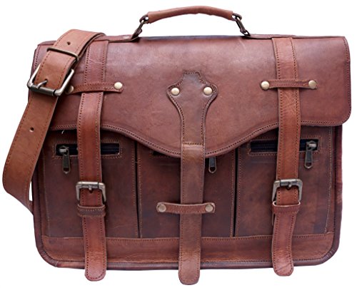Phoenix Craft Genuine Vintage Brown Leather Messenger Bag Padded Laptop Case Shoulder Macbook Briefcase women Laptop Bag Leather Travel Bag 15X11X4.5Inches Brown