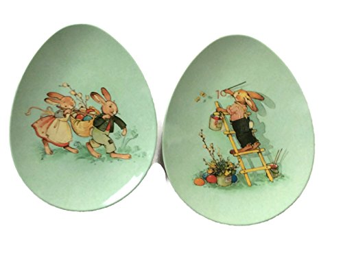Easter Egg Shaped Plate Bundle 2 Plates With Classic Rabbit Design
