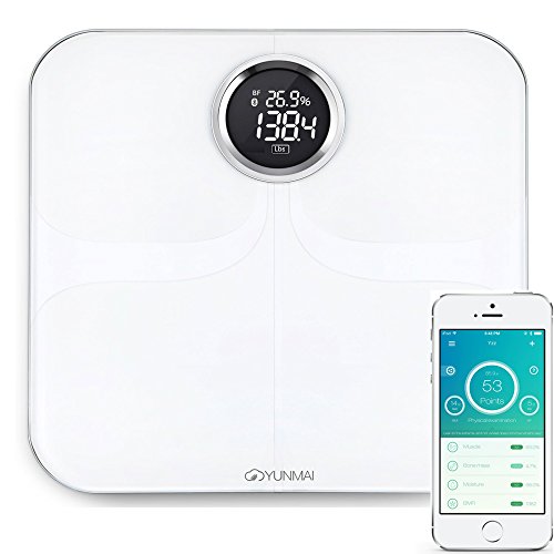 Yunmai Bluetooth Smart Body Scale, Tracks Weight, Body Fat Percentage, BMI/BMR, Bone Mass, Hydration Level, Muscle & Body Age, 16 Users Recognition, App Compatible with Apple & Android White
