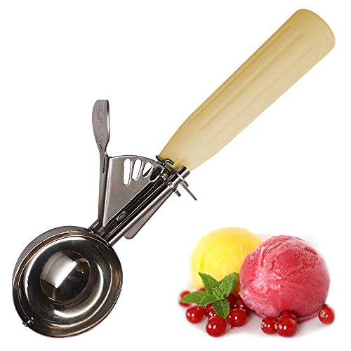 Icecream Spoon Stainless Steel Ice Cream Scoop Spoon Turner Perfect Size 10 with Trigger Lever Comfortable Handle, Size 10 - Lacte White
